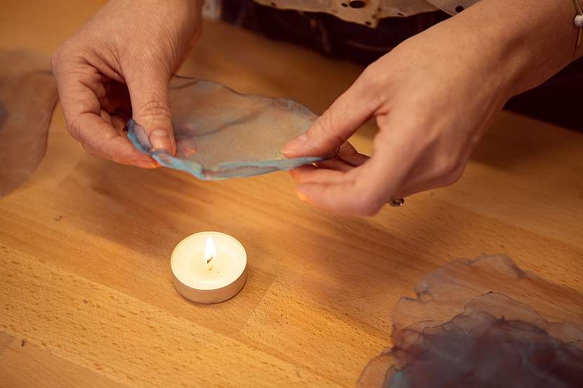 V první řadě musíme upozornit, že při výrobě budeme používat otevřený oheň a je tedy nutné dodržovat maximální bezpečnostní podmínky. Organza totiž hoří velmi ochotně a velmi rychle. Chcete-li do práce zapojit i děti, mějte je vždy na očích.